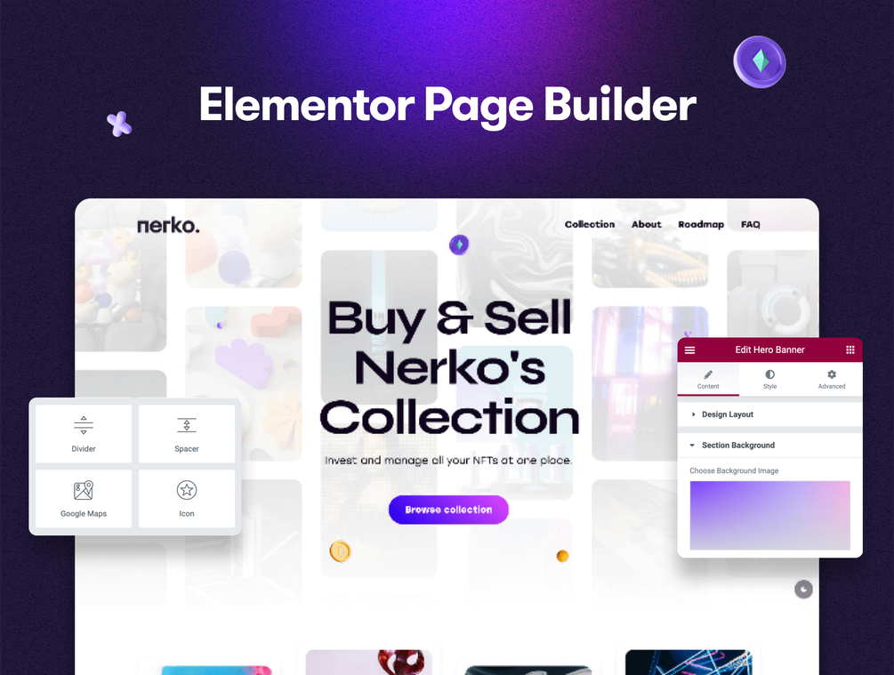It supports Elementor Page Builder. That will make this theme is easy to use for a new WordPress user. You don’t need any knowledge of CSS or HTML to get the most out of this powerful NFT Portfolio WordPress theme – simply get started by importing all of the theme demos and data in a single click.